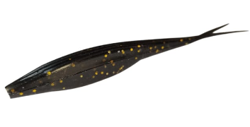 The 1BaitCo 5" Fluke Black and Gold Soft Bait is an essential jerkbait for serious bass anglers looking to provoke fierce strikes. This 5-inch soft plastic lure mimics an injured baitfish with a streamlined body and a split tail that creates erratic, darting movements. Its striking black and gold color pattern provides excellent contrast and visibility, making it highly effective in various water conditions to entice bass.